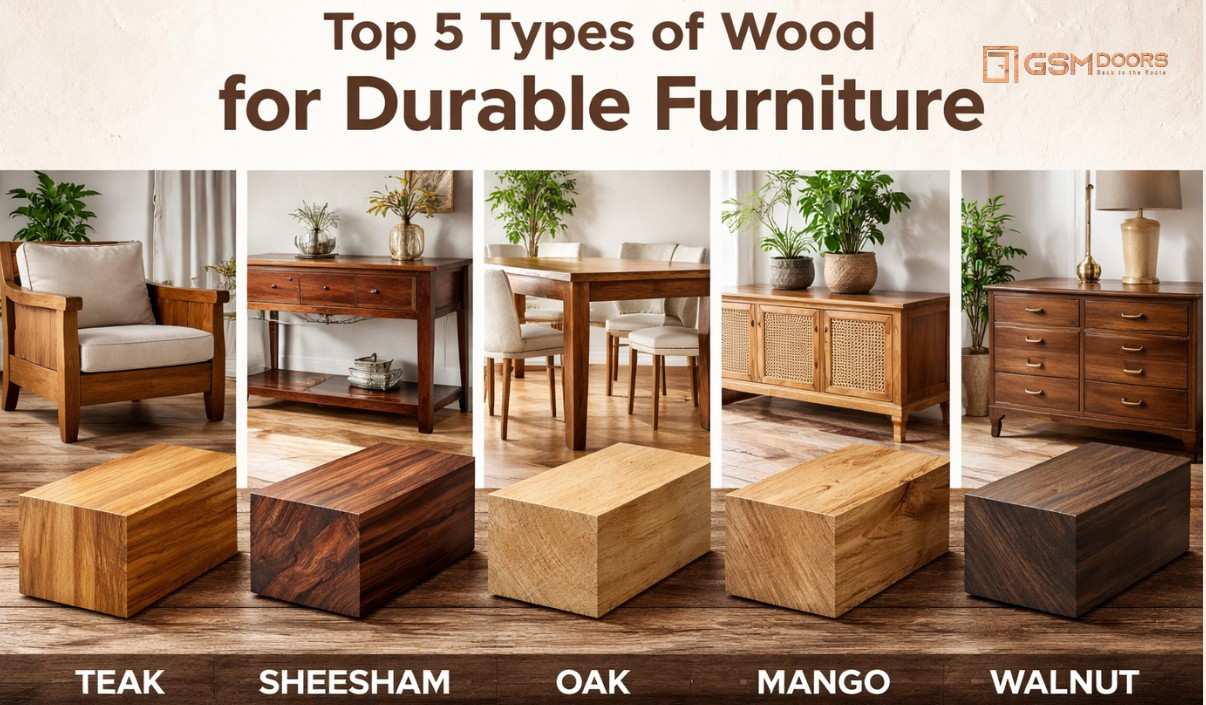 Choosing from the 5 types of wood is an important step in creating durable and visually appealing furniture. Teak, sheesham, oak, mango, and walnut each offer unique advantages depending on usage and design requirements. Among these options, teak continues to lead due to its unmatched strength and adaptability. This is why many manufacturers rely on teak for high quality products including teakwood doors.